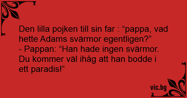 - Pappa, vem var Adams svärmor? - Han hade ingen, han var ju i paradiset