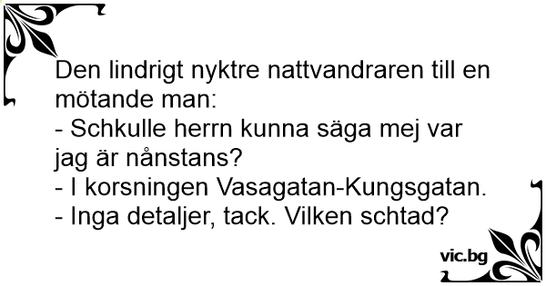 - Inga detaljer, tack. Vilken schtad?