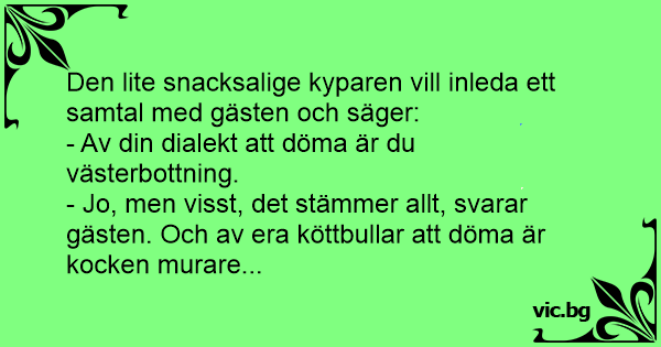 - Jo, men visst, det stämmer allt, svarar gästen. Och av era köttbullar att döma är kocken murare...