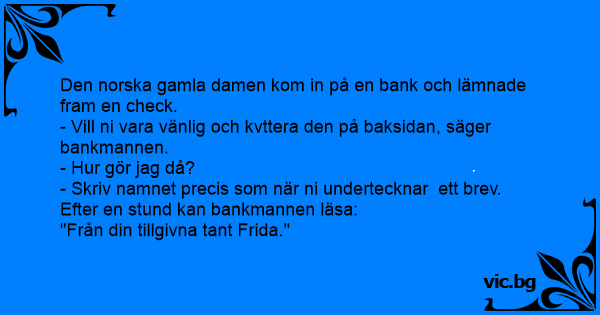 Den norska gamla damen kom in på en bank och lämnade fram en check.
