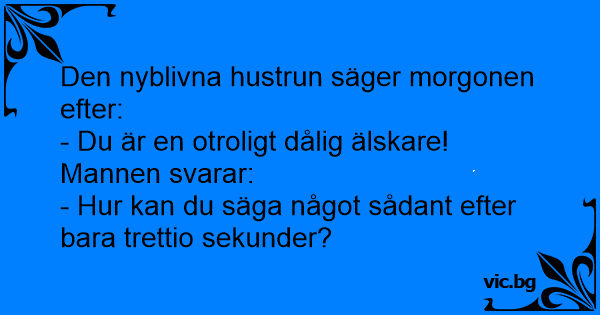 Tjejen till killen: - Du är en dålig älskare! - Va, hur kan du avgöra det efter ett samlag på ynka 15 sekunder?!