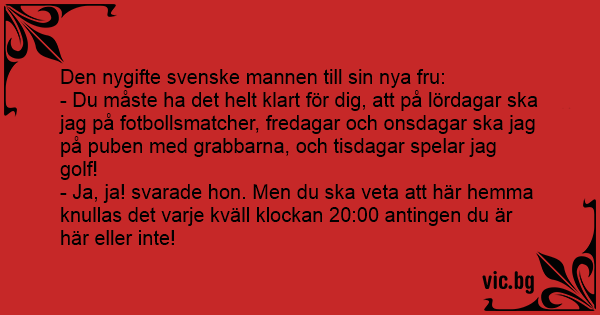 Den nygifte svenske mannen till sin nya fru: