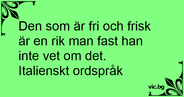 Den som är fri och frisk är en rik man fast han inte vet om det.