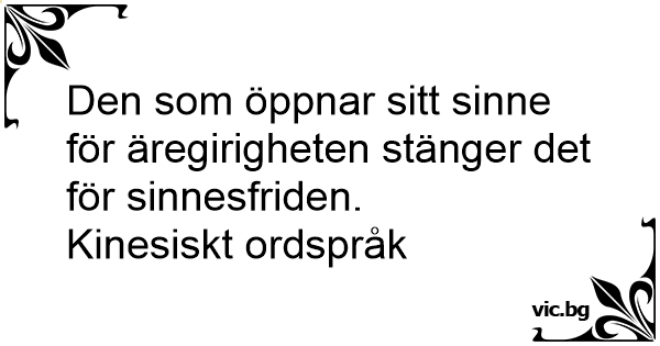 Den som öppnar sitt sinne för äregirigheten stänger det för sinnesfriden.