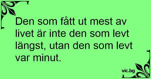 Den som fått ut mest av livet är inte den som levt längst, utan den som levt var minut.