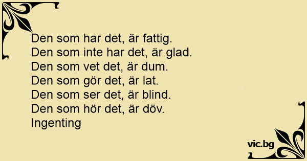 Den som inte har det, är glad.