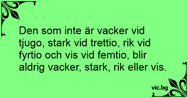 Den som inte är vacker vid tjugo, stark vid trettio, rik vid fyrtio och vis vid femtio, blir aldrig vacker, stark, rik eller vis.
