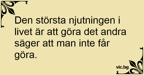 Den största njutningen i livet är att göra det andra säger att man inte får göra.