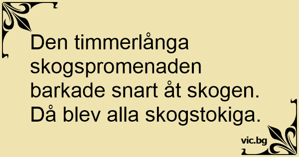 Den timmerlånga skogspromenaden barkade snart åt skogen. Då blev alla skogstokiga.