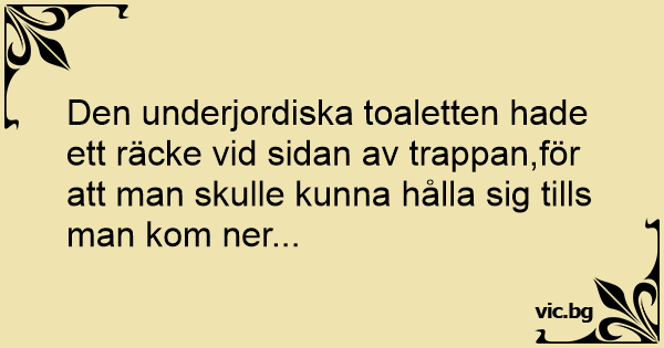 Den underjordiska toaletten hade ett räcke vid sidan av trappan,för att man skulle kunna hålla sig tills man kom ner...