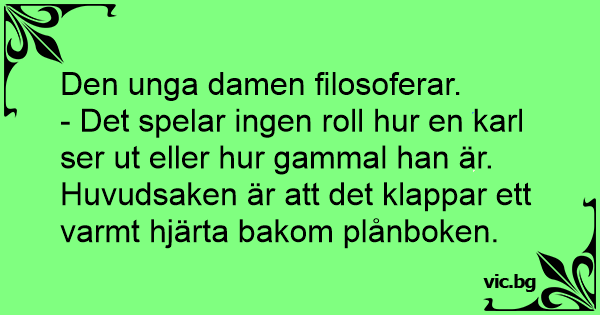 - Det spelar ingen roll hur en karl ser ut eller hur gammal han är. Huvudsaken är att det klappar ett varmt hjärta bakom plånboken.
