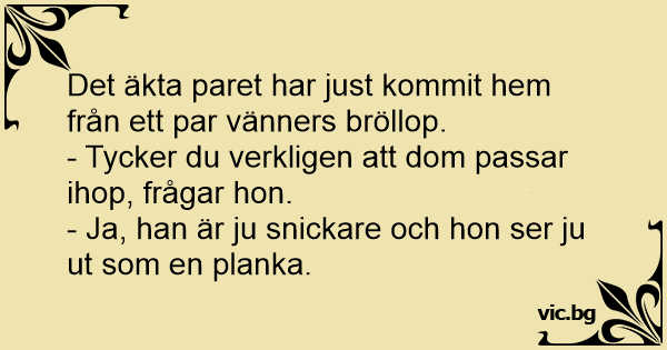 - Ja, han är ju snickare och hon ser ju ut som en planka.