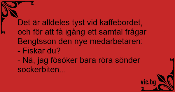 Det är alldeles tyst vid kaffebordet, och för att få igång ett samtal frågar Bengtsson den nye medarbetaren: