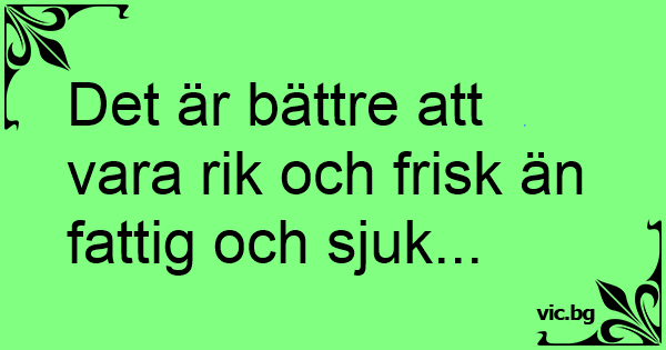 Det är bättre att vara rik och frisk än fattig och sjuk...