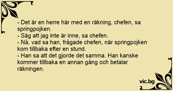 - Nå, vad sa han, frågade chefen, när springpojken kom tillbaka efter en stund.