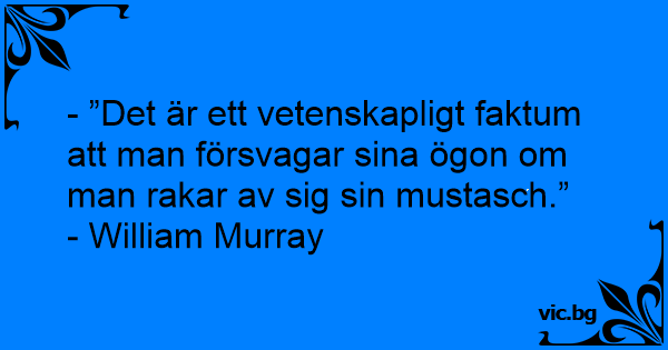 - ”Det är ett vetenskapligt faktum att man försvagar sina ögon om man rakar av sig sin mustasch.”