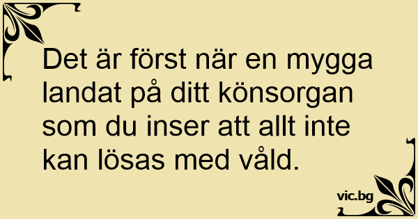 Det är först när en mygga landat på ditt könsorgan som du inser att allt inte kan lösas med våld.