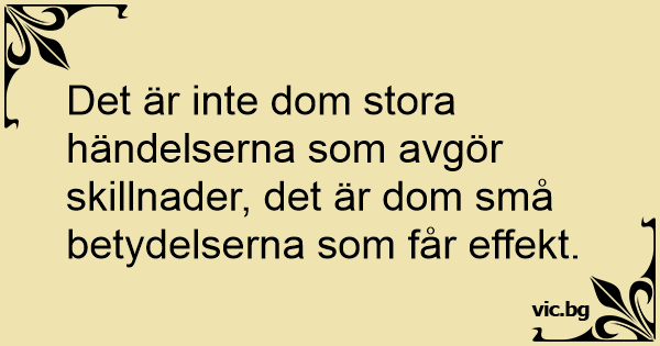 Det är inte dom stora händelserna som avgör skillnader, det är dom små betydelserna som får effekt. 77 0 0 Roliga citat