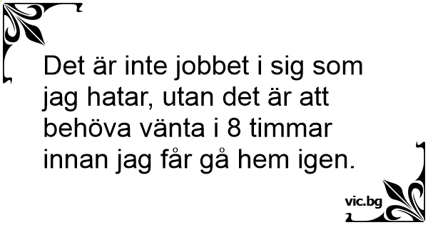 Det är inte jobbet i sig som jag hatar, utan det är att behöva vänta i 8 timmar innan jag får gå hem igen.