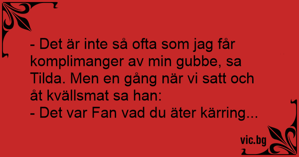 - Det är inte så ofta som jag får komplimanger av min gubbe, sa Tilda. Men en gång när vi satt och åt kvällsmat sa han: