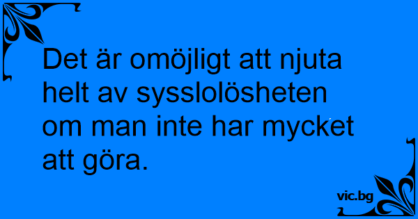 Det är omöjligt att njuta helt av sysslolösheten om man inte har mycket att göra.