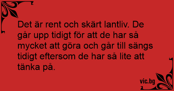 Det är rent och skärt lantliv. De går upp tidigt för att de har så mycket att göra och går till sängs tidigt eftersom de har så lite att tänka på.