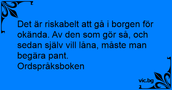 Det är riskabelt att gå i borgen för okända. Av den som gör så, och sedan själv vill låna, måste man begära pant.