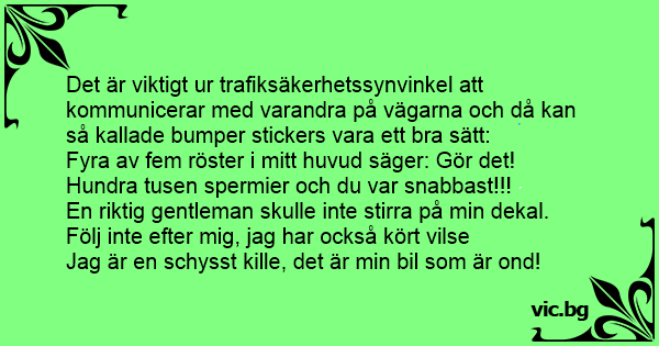 Det är viktigt ur trafiksäkerhetssynvinkel att kommunicerar med varandra på vägarna och då kan så kallade bumper stickers vara ett вrа sätt: