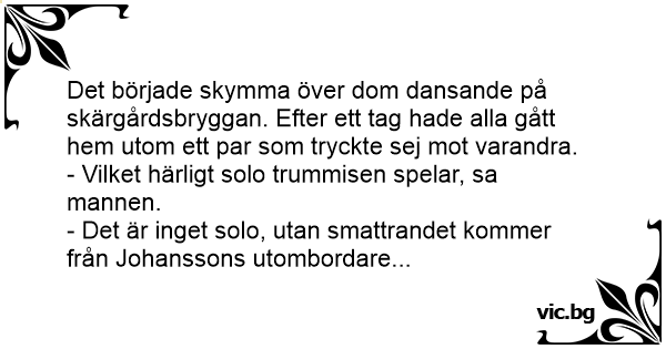 Det började skymma över dom dansande på skärgårdsbryggan. Efter ett tag hade alla gått hem utom ett par som tryckte sej mot varandra.