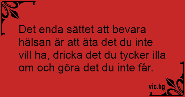 Det enda sättet att bevara hälsan är att äta det du inte vill ha, dricka det du tycker illa om och göra det du inte får.