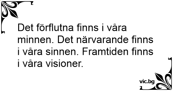 Det förflutna finns i våra minnen. Det närvarande finns i våra sinnen. Framtiden finns i våra visioner.