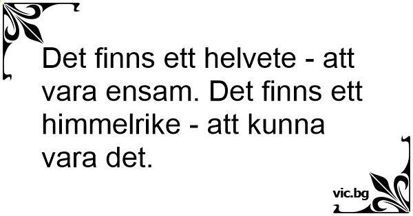 Det finns ett hеlvете - att vara ensam. Det finns ett himmelrike - att kunna vara det.