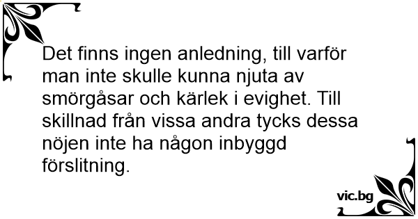 Det finns ingen anledning, till varför man inte skulle kunna njuta av smörgåsar och kärlek i evighet. Till skillnad från vissa andra tycks dessa nöjen inte ha någon inbyggd förslitning.