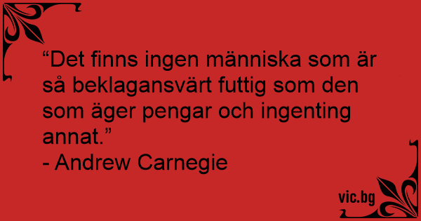 “Det finns ingen människa som är så beklagansvärt futtig som den som äger pengar och ingenting annat.”