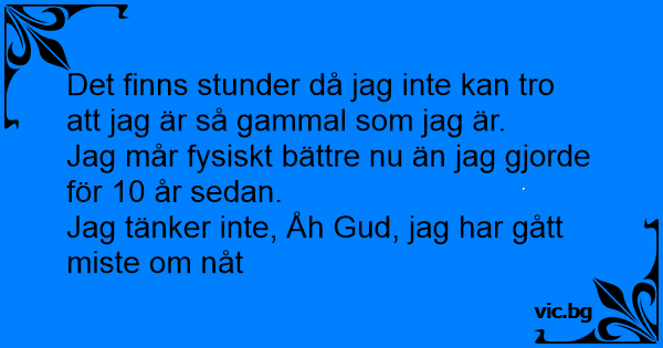 Det finns stunder då jag inte kan tro att jag är så gammal som jag är.