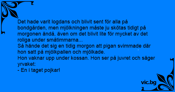 Så hände det sig en tidig morgon att pigan svimmade där hon satt på mjölkpallen och mjölkade.