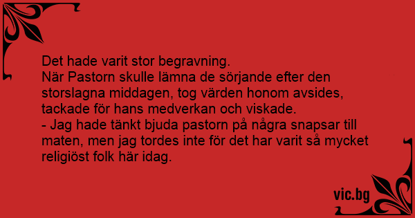 När Pastorn skulle lämna de sörjande efter den storslagna middagen, tog värden honom avsides, tackade för hans medverkan och viskade.