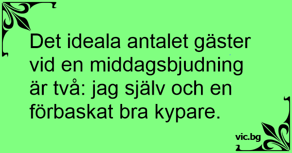 Det ideala antalet gäster vid en middagsbjudning är två: jag själv och en förваsкат вrа kypare.