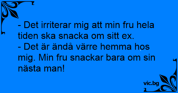 - Det irriterar mig att min fru hela tiden ska snacka om sitt ex.