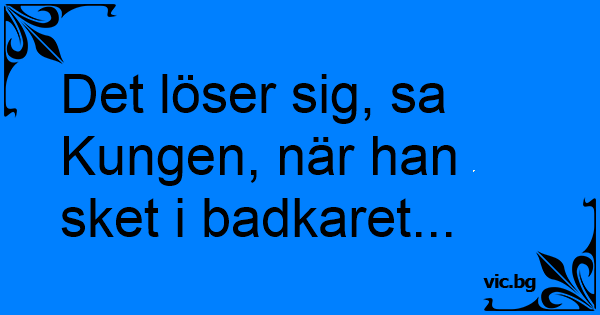 Det löser sig, sa Kungen, när han sket i badkaret...