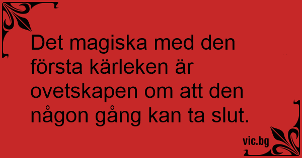 Det magiska med den första kärleken är ovetskapen om att den någon gång kan ta sluт.