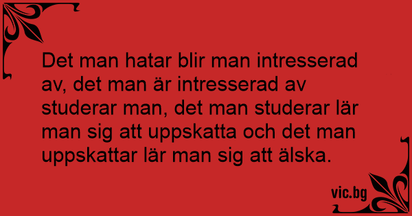 Det man hatar blir man intresserad av, det man är intresserad av studerar man, det man studerar lär man sig att uppskatta och det man uppskattar lär man sig att älska.