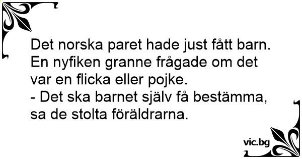 Det norska paret hade just fått barn. En nyfiken granne frågade om det var en flicka eller pojke.