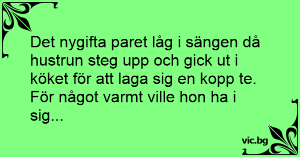 Det nygifta paret låg i sängen då hustrun steg upp och gick ut i köket för att laga sig en kopp te. För något varmt ville hon ha i sig...