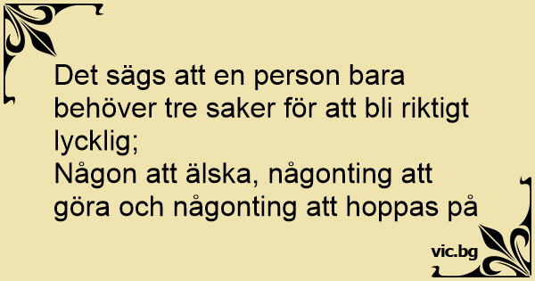 Det sägs att en person bara behöver tre saker för att bli riktigt lycklig;