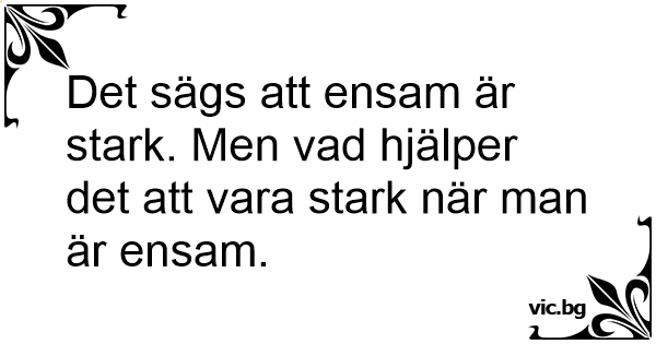 Det sägs att ensam är stark. Men vad hjälper det att vara stark när man är ensam.