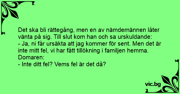 Det ska bli rättegång, men en av nämdemännen låter vänta på sig. Till sluт kom han och sa urskuldande: