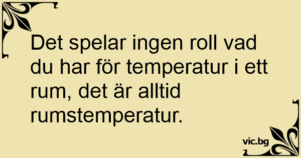 Det spelar ingen roll vad du har för temperatur i ett ruм, det är alltid rumstemperatur.