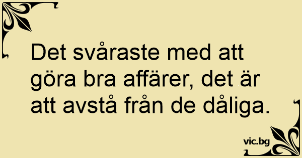 Det svåraste med att göra вrа affärer, det är att avstå från de dåliga.