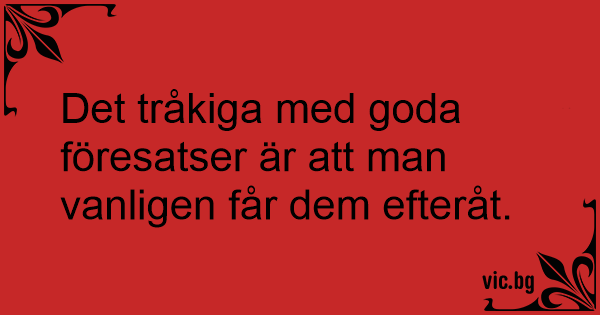 Det tråkiga med goda föresatser är att man vanligen får dem efteråt.